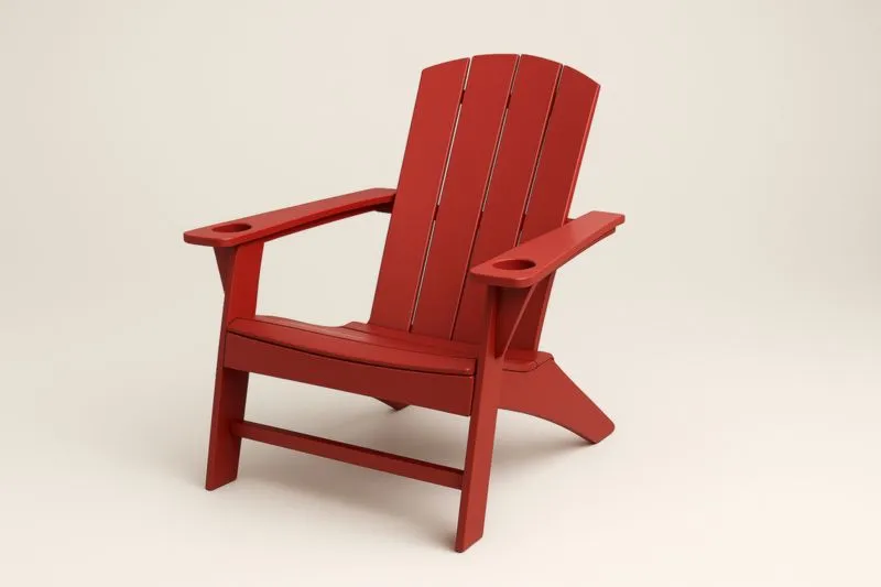 Cette chaise Adirondack en plastique composite rouge offre une assise stable et confortable pour les espaces extérieurs. Sa forme simple s’intègre facilement dans un jardin, sur une terrasse ou près d’une piscine, pour accompagner vos instants de détente au quotidien.
